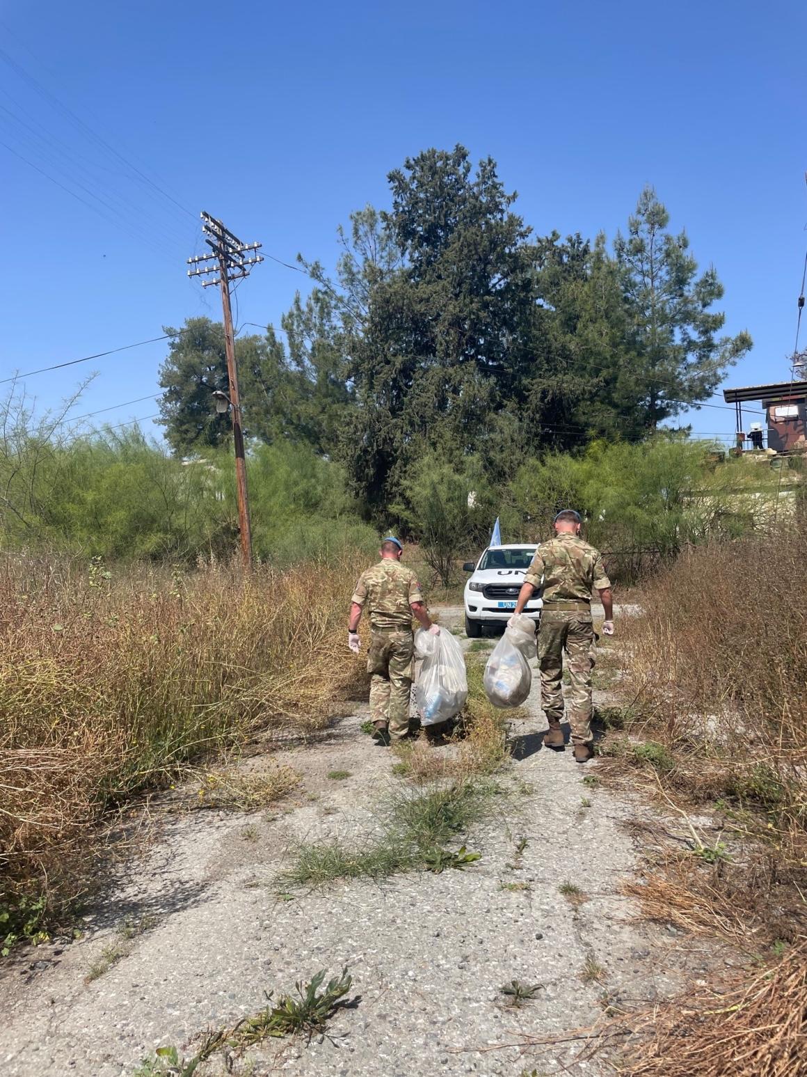 UNFICYP peacekeepers from the UK, Argentina and Slovakia have been conducting clean-up operations across large swaths of the UN buffer zone collecting plastic waste and disposing it responsibility to allow the environment inside the buffer zone to flourish.